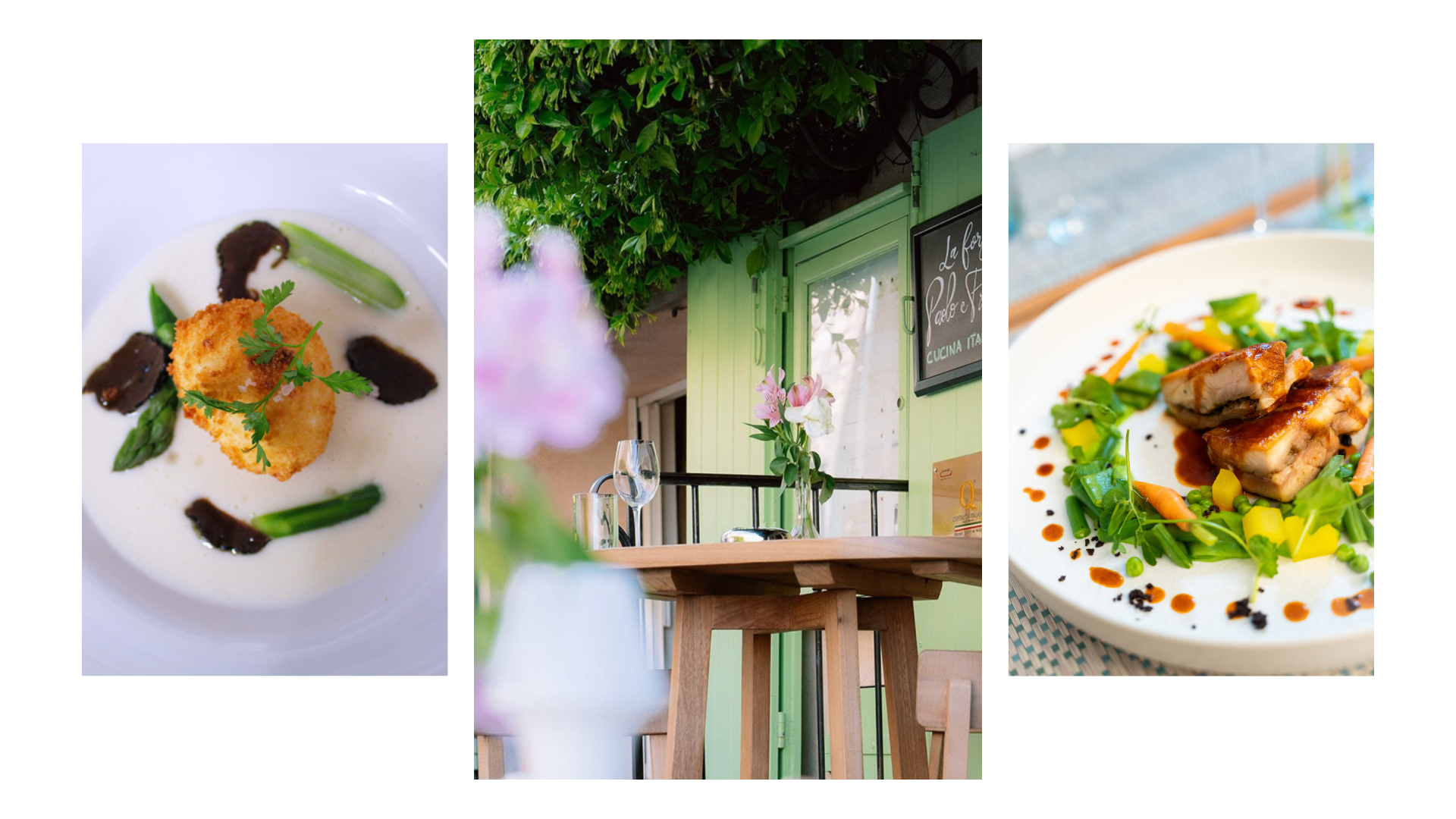 Il pregio della materia prima, il tocco italiano che ben conosce la Francia, le migliori abitudini internazionali e il vino rigorosamente selezionato, danno via libera all’entusiasmo e cittadinanza ad un’esperienza gourmet senza confini.