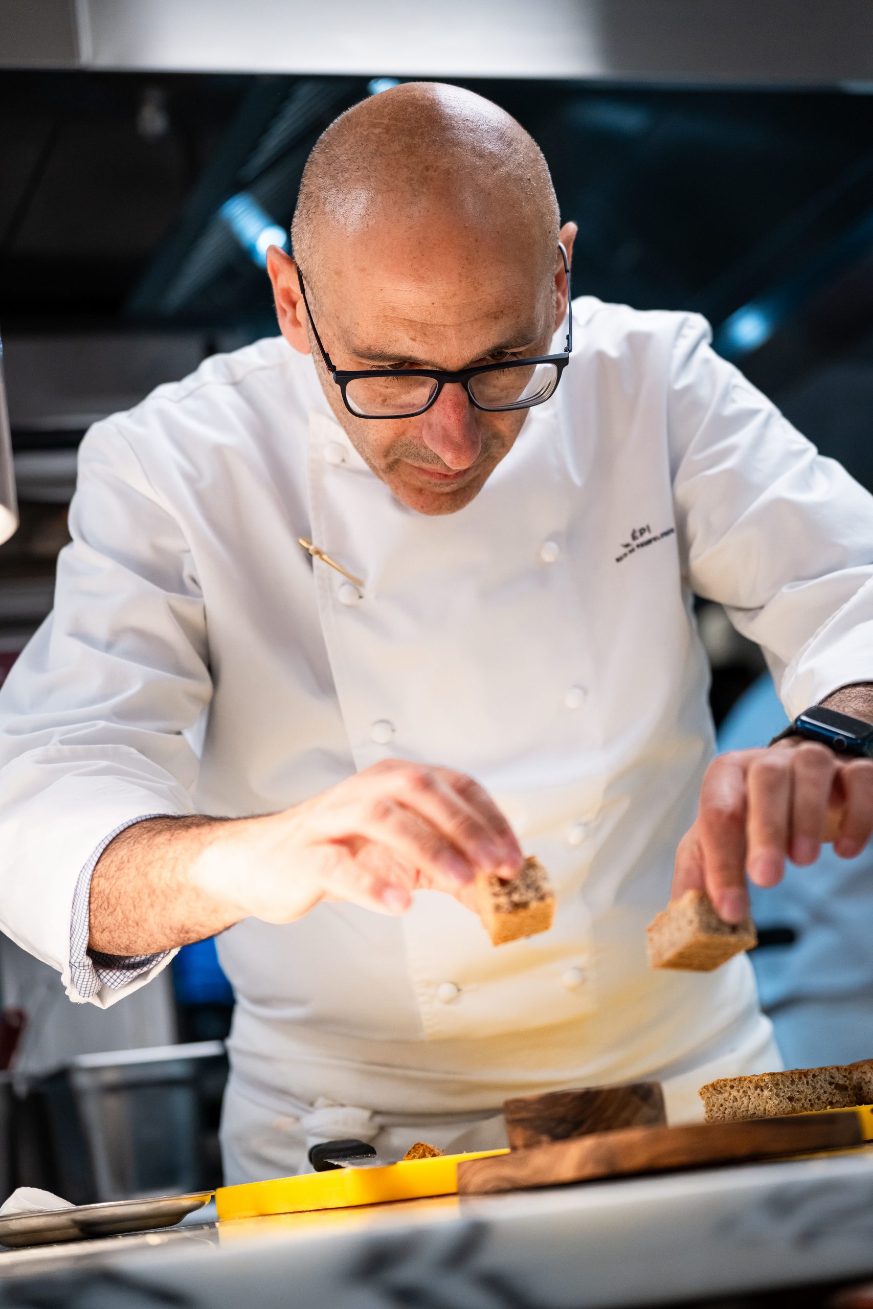 Paolo intègre les ingrédients disponibles en France avec des produits d’origine italienne irremplaçables, en travaillant la pâte, le pain et toutes les bases de la cuisine autochtone à La Forge. Il aime aussi le faire devant les yeux de ses hôtes, pour satisfaire ceux qui veulent une preuve d’authenticité et qui souligne l’importance du geste, de la technologie et de la connaissance en premier lieu.